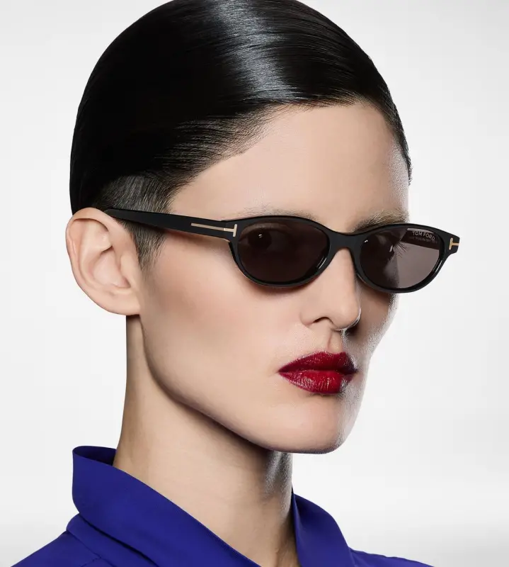 A SMALL, SLIM SHAPE WITH A UNIQUE DESIGN. THE SHARP ANGLES OF THE FRONT AND THE ICONIC T LOGO EXTENDING ALONG THE TEMPLES CONVEY AN UNMISTAKABLE IDENTITY