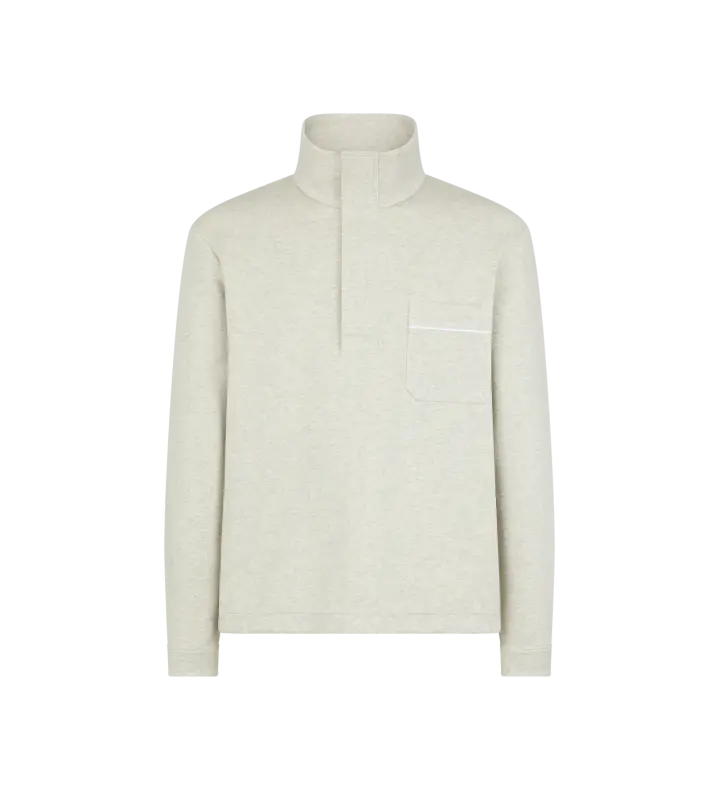 COTTON SILK CASHMERE HALF BUTTON PULLOVER MOON