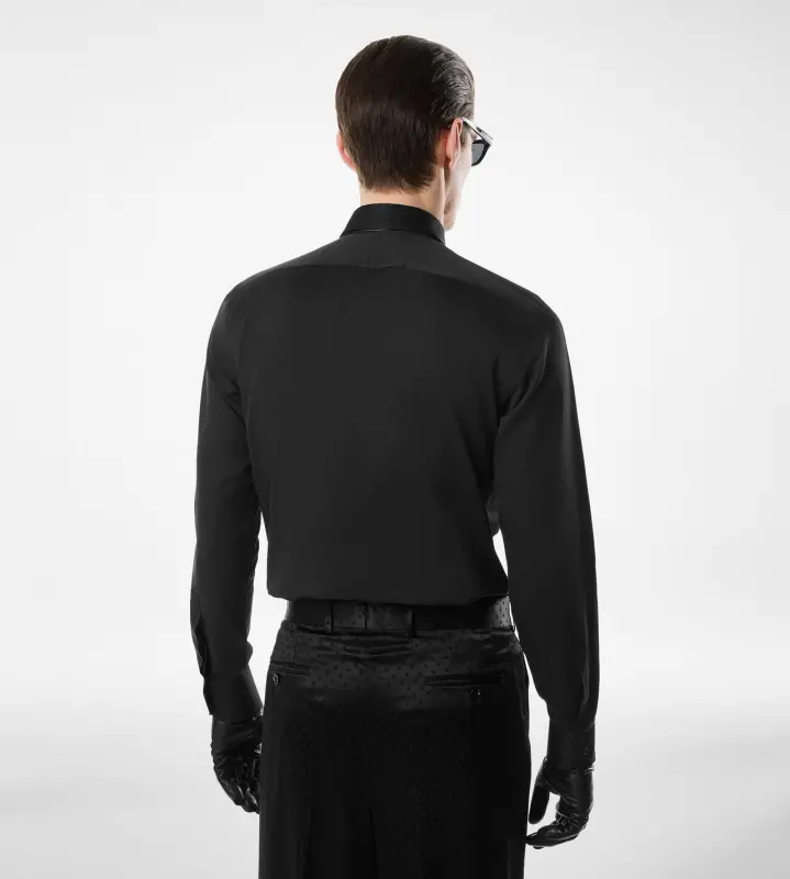 The cotton silk shirt balances the structure of cotton with the fluidity and eternal elegance of silk, highlighting TOM FORD’s use of fabric contrasts. A wardrobe essential with a classic fit.