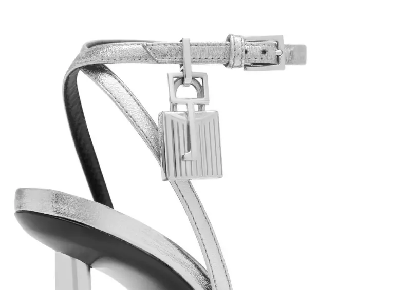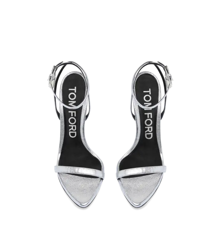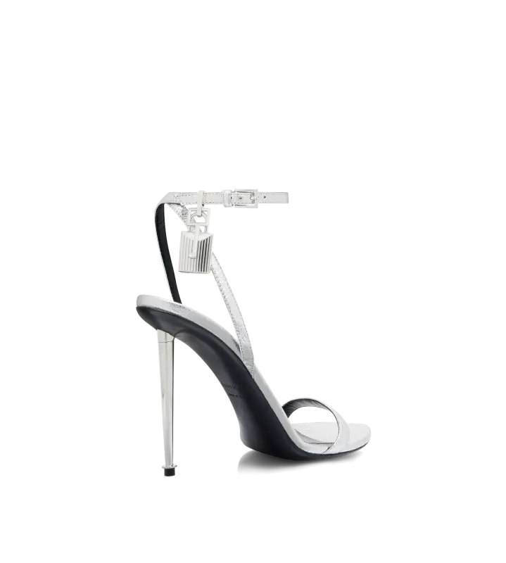 LAMINATED NAPPA LEATHER PADLOCK POINTY NAKED SANDAL SILVER