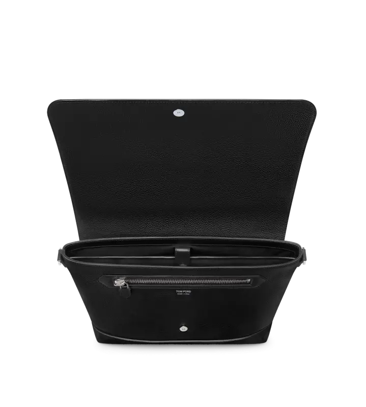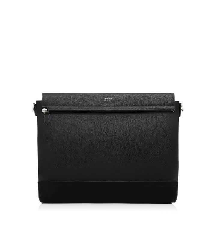LEATHER AND SUEDE CHIC SPORT FLAP MESSENGER BLACK