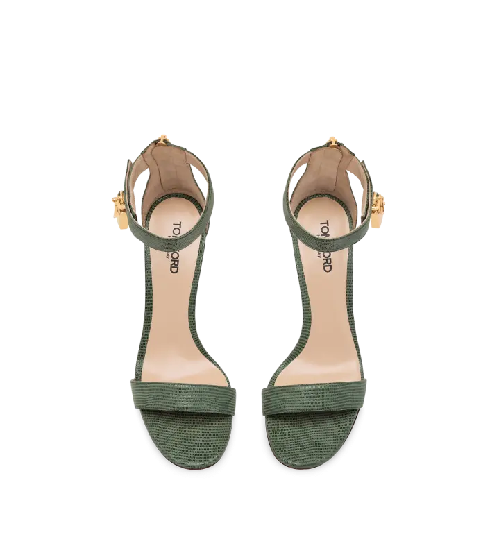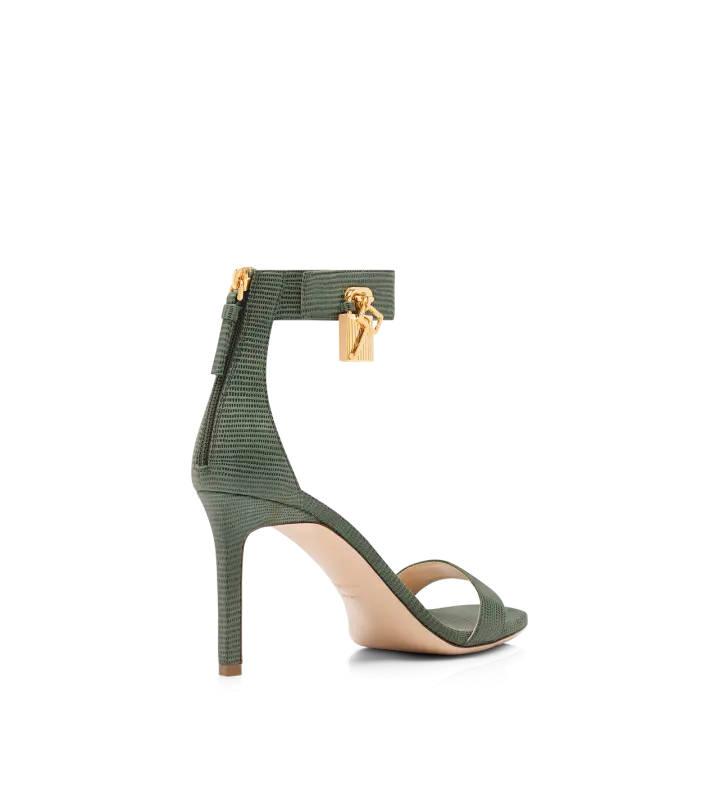 LIZARD-EFFECT SUEDE LEATHER PADLOCK SANDAL LAUREL GREEN