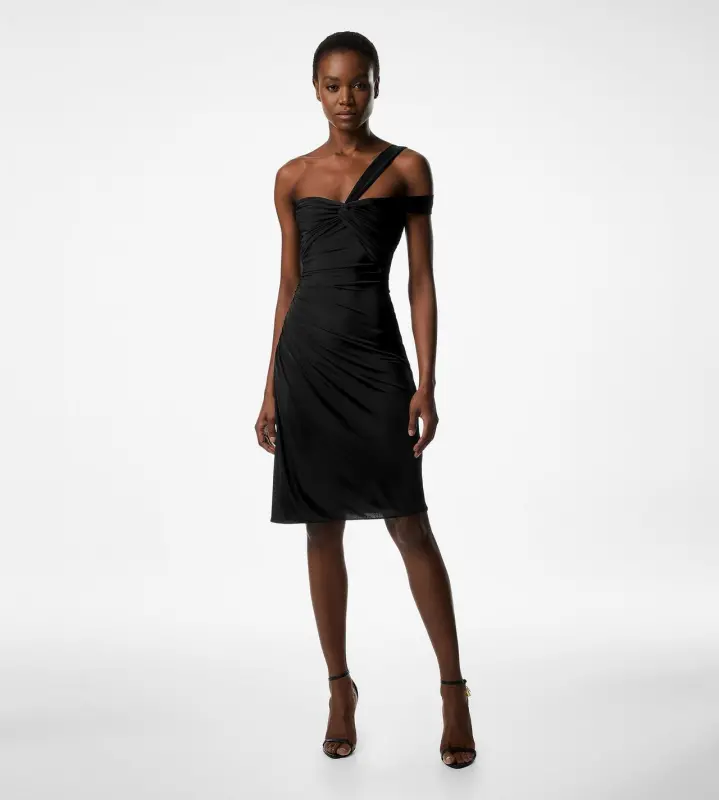 ONE SHOULDER TWIST FRONT COCKTAIL DRESS BLACK