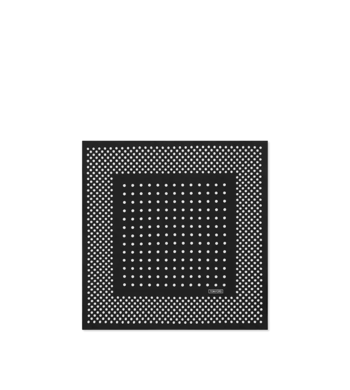 A refined TOM FORD pocket square crafted in pure mulberry silk. The framed polka dot motif adds elegance and uniqueness.