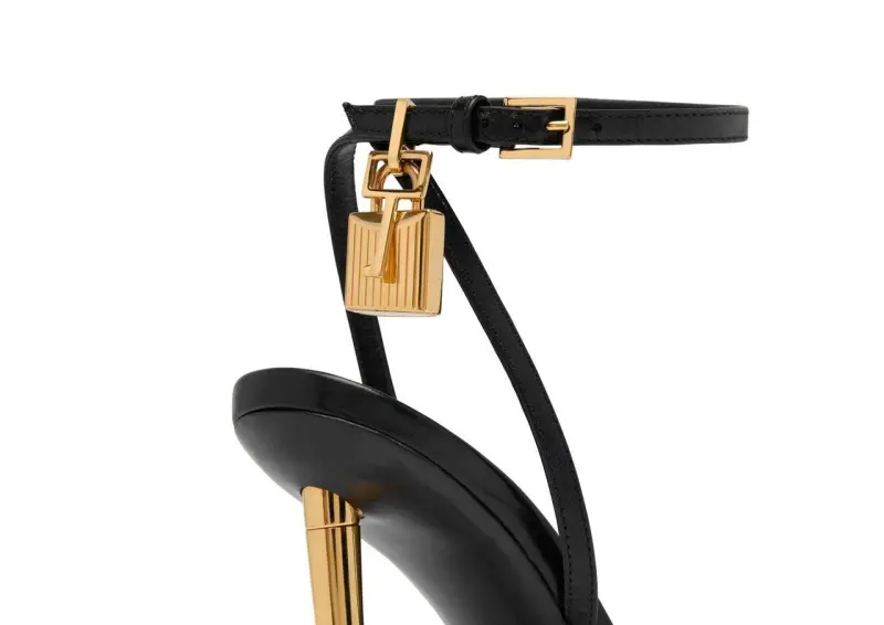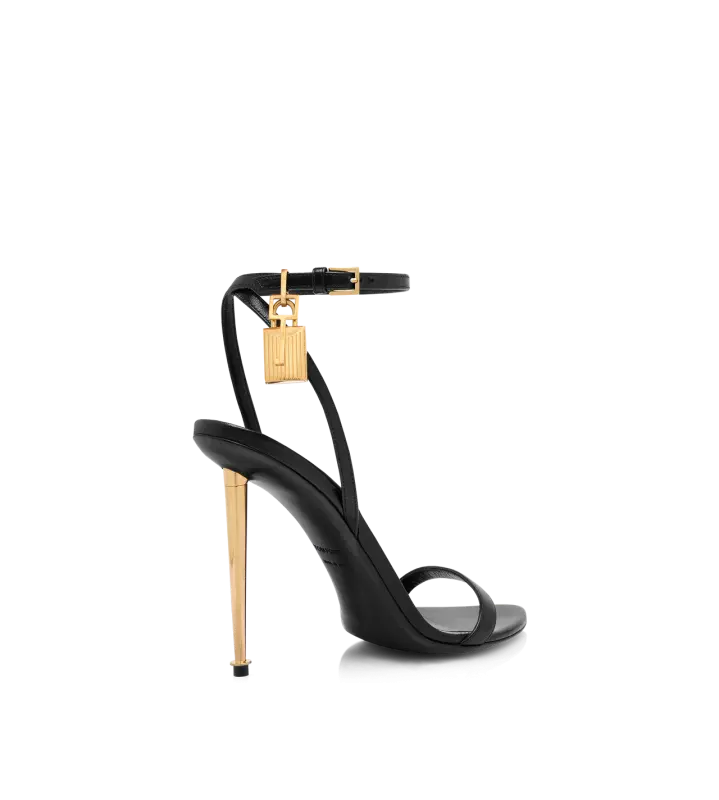 SHINY LEATHER PADLOCK POINTY NAKED SANDAL BLACK