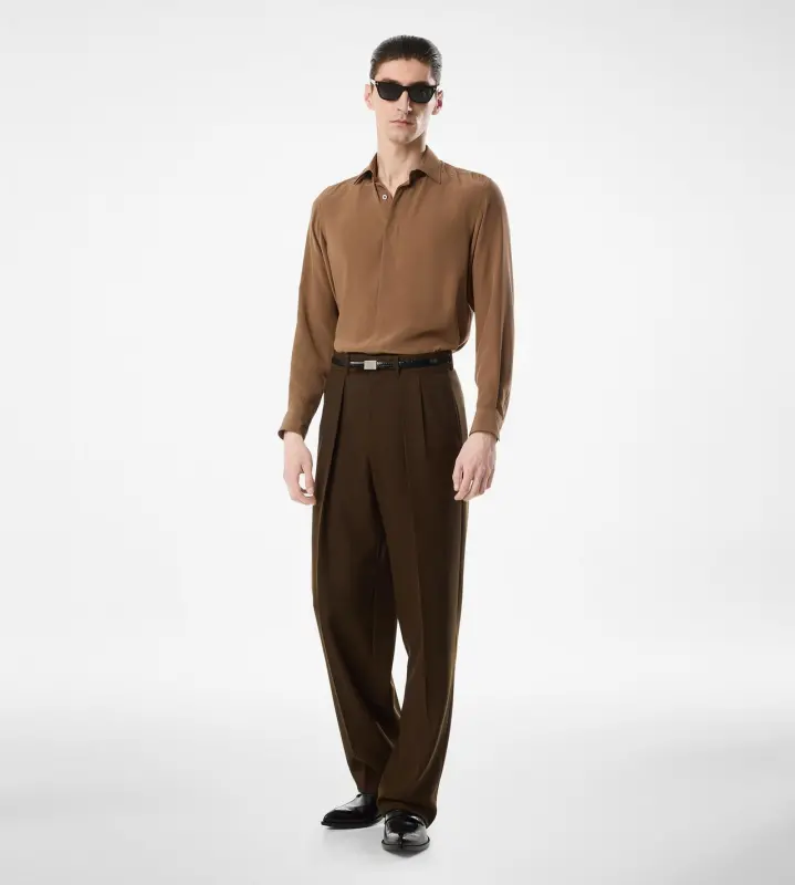 SILK FLUID FIT SHIRT LIGHT BROWN