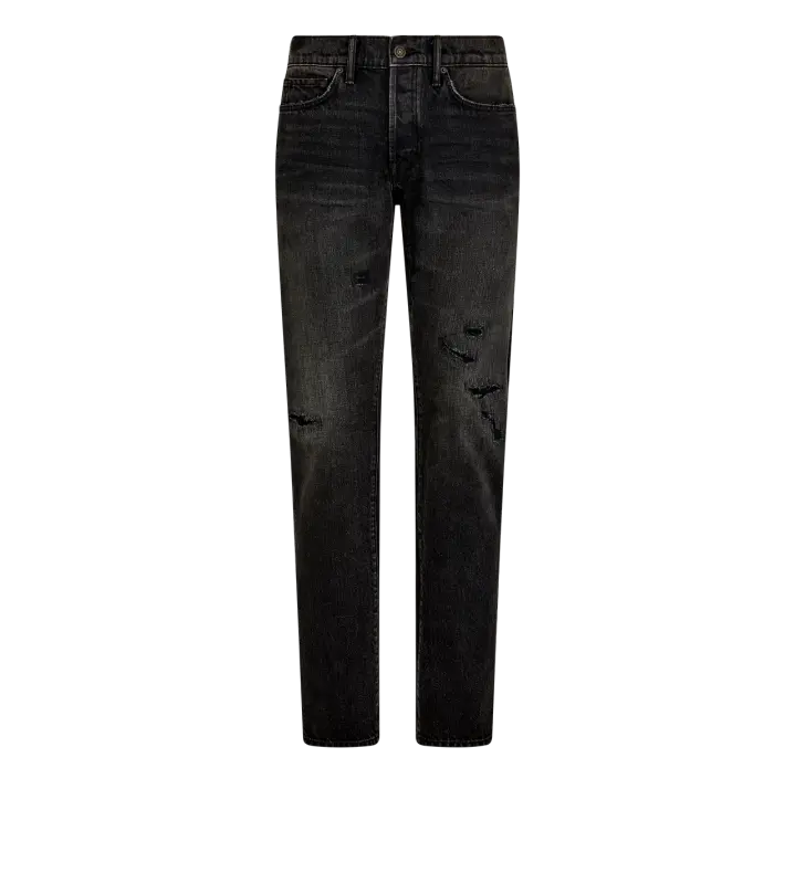 STRETCH DENIM STRAIGHT FIT WASHED BLACK